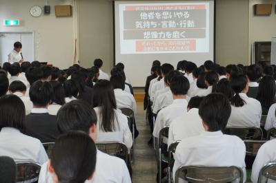 講演では、感染症予防や差別・偏見をなくすための正しい知識を学び、さらに「自分の命を大切にすること」「相手を思いやる心」の重要性についても考える機会となりました。
