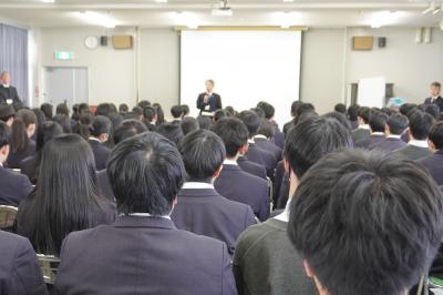はじめに中川校長より挨拶があり「高校時代に学校以外の場で何をしてきたのか、自分をアピールできる武器をもつチャンスを自ら掴んでほしい。」と進路に向けて主体的に行動し、自らの可能性を広げるよう鼓舞されました。
