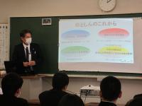 生徒は、「挑戦して失敗してもプラスに考え次に進むことが大事と学びました。」「いろいろな職業の心構え等について知ることができた。」「話を聴いて自分の興味ある事に積極的に挑戦してみたいと思った。」等と感想を述べていました。