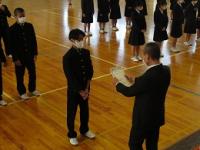 3年生は得点を伸ばす余地がある未開拓分野を徹底的に勉強する。1、2年生は学ぶ楽しさを得るために少しの我慢が必要である。がんばった先には未来が開ける。」と式辞の言葉がありました。