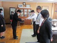 令和2年9月30日(水)、校長室で後期生徒会役員認証式を行いました。