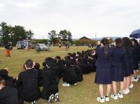 10月22日(木)7限目に本校グラウンドにおいて、『JAスタント 自転車交通安全教室』を行いました。スタントマンが危険な自転車走行や歩行による交通事故を再現した実演を行い、交通事故の危険性を疑似体験しました。その後警察署の方が、「自転車乗車時の注意点として、ヘルメット・反射板・二重ロックを守る。さらには、横断歩道等ではアイコンタクトが大事。これらを守り、安全で安心した生活を送ってほしい。」と話をされました。最後に生徒会長の2年生舛岡君が「危険な自転車の乗り方をせず、しっかり交通ルールを守っていきたい。」と挨拶をしました。自転車の交通ルール遵守、交通マナーの必要性を再認識した貴重な体験となりました。