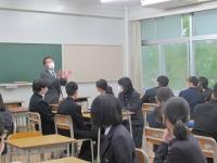 学校長より「全国的に新型コロナウイルス感染はまだまだおさまる気配はなく、授業、学校行事、大学入試等に、これ以上影響が出ないことを祈るばかりである。一人一人が感染を広げない自覚を持つべきだという考えは大事であるが、新型コロナウイルス感染によって引き起こされる差別や偏見、誹謗中傷は絶対にしてはいけない。一人一人のことを尊重し、自分本位ではなく、『利他』の思いを広げ行動してほしい。文部科学省から『何が大切か。感染防止も大切だが、もっと大切なこともある』というメッセージが出された。後でメッセージを読み、もう一度自分で考えて欲しい。」と式辞の言葉がありました。