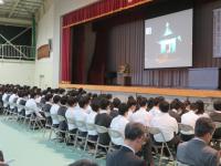 学校長講話では、「夏休み期間は自分で自分をマネジメントして下さい。現状と目標とのギャップをどの様に埋めていくか考える、上手くいかなかった時は周りに相談し助け合っていく、そういった学校になることを期待します。」と話されました。