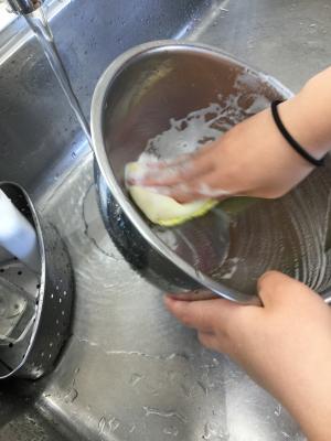 1年生に調理室の使い方を覚えてもらうため、お菓子を作ることにしました。コロナの関係でしばらく調理は控えていたので久しぶりでした。