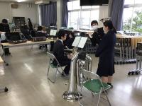 楽器体験の最後に、吹奏楽部2,3年生と、新1年生の楽器経験者の皆さんで、「アニーローリー」を演奏しました。楽器を持たない一年生も、指揮者(手拍子)で参加し、すごく温かい演奏に包まれて、幸せな気分になりました。また遊びに来てね~!!