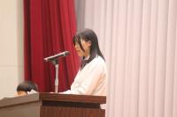 井上校長からは「ステージに立ち自分たちの言葉で伝えている姿にとても感動し応援したくなりました。生徒会活動は生徒のためにもなりますし、君たち自身の財産にもなることでしょう。お互い頑張りましょう。」と生徒会新役員に向け激励の言葉がありました。