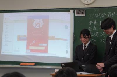 12月16日(火)、1学年40班によるアプリ開発の最終発表会が行われました。