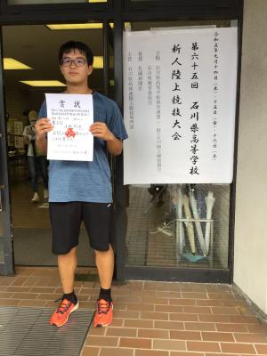 以上フィールド競技の3名が上位成績を収め入賞し、1年生の小櫃君(ハンマー投)と松若さん(やり投)は、10月に新潟県で開かれます北信越新人大会への切符を手にしました。