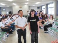 7月3日は全校生徒との対面式。羽咋高校生達は大歓迎の拍手!午前は英語・数学・音楽・体育の授業で交流しました。