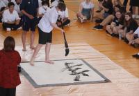 本校に桜鱗氏をお迎えして書道パフォーマンス