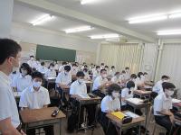 学校長より「全国的に新型コロナウイルス感染はまだまだおさまる気配はなく、授業、学校行事、大学入試等に、これ以上影響が出ないことを祈るばかりである。一人一人が感染を広げない自覚を持つべきだという考えは大事であるが、新型コロナウイルス感染によって引き起こされる差別や偏見、誹謗中傷は絶対にしてはいけない。一人一人のことを尊重し、自分本位ではなく、『利他』の思いを広げ行動してほしい。文部科学省から『何が大切か。感染防止も大切だが、もっと大切なこともある』というメッセージが出された。後でメッセージを読み、もう一度自分で考えて欲しい。」と式辞の言葉がありました。