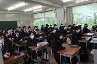 5月20日(木)、コロナウイルス感染防止対策のため放送による「令和3年度石川県高等学校総合体育大会並びに石川県高等学校総合文化祭」の壮行式を行いました。各部の代表者が、総体・総文に向けての抱負を述べました。学校長が、「全力を尽くし一回り大きく成長して凱旋することを期待する。」と挨拶され、生徒会長の村田くんから「感謝の心を忘れずに、頑張ってほしい。皆で応援している。」と激励の言葉がありました。