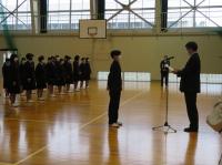 体育の授業で練習を積み、自己ベスト更新を目標に、男子208名、女子223名、計431名の生徒が、千里浜なぎさドライブウェイ(男子10km、女子6km)を各自のペースでゴールを目指して走りました。学校に戻り、第1体育館で20位入賞者の表彰伝達式を行いました。3年連続20位以内の入賞者は男子4名女子1名の計5名。『男子』1位でゴールした野口くんは、3年連続1位を達成しました。