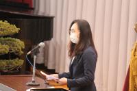 会長候補は「いつでも、だれにでも、何度でも、じぶんから あいさつ」を提唱。また、「挑戦することの大切さを、自分たちの行動で示していきたい」と語りました。