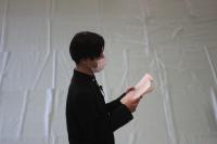 今回も新型コロナウイルス感染防止のため、放送室から演説の様子を各教室へライブ配信しました。