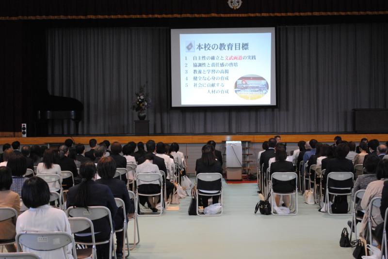 入学式後は、保護者説明会が行われました。スライドを使い、各課から羽咋高校で行われている国際交流や未来塾等のお話がありました。