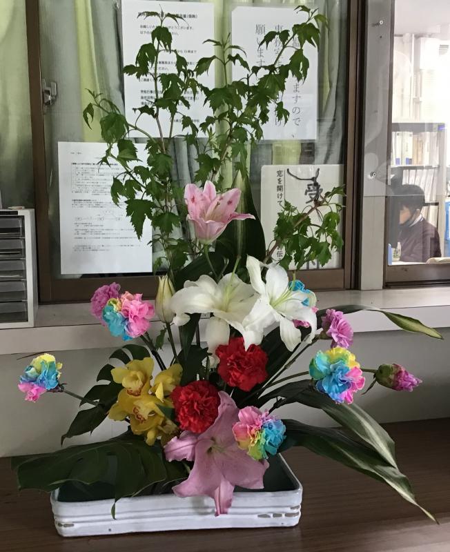 入学式で新入生を出迎えてくれたお花も、まだまだ元気です。形を変えながら学校に彩りを添え、人々の目を楽しませてくれています。
