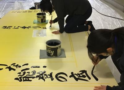 すでにご覧になった方も多いと思いますが、先月から羽咋高校正門に設置された応援看板は、本校生徒とPTAから能登半島地震で被災された方に向けての復興応援メッセージです。光をイメージした黄色の看板に、1・2年生の有志5名が心を込めて直筆したものです。