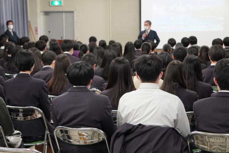 3年生には「ビッグピクチャーを描こう。共通テストを控えた今は目の前のことしか見えなくなりがちだが、ここが将来に繋がる踏ん張り時のプロセスだと捉え、気持ちに余裕を持って今のこと、将来のことを考えて頑張ってください。」と述べられました。