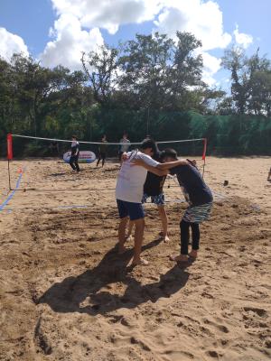 次に9月23日に千里浜のビーチバレー専用コートで行われた「がんばろう能登プロジェクトエアバドミントンin千里浜」に参加した様子です。