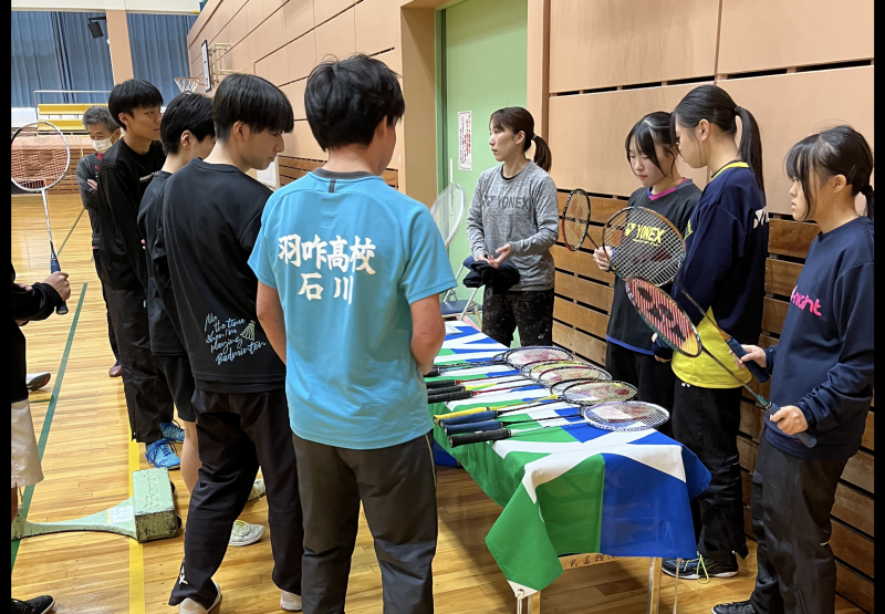 10月11日・12日には、七尾総合市民体育館および鹿島体育センターで行われた「能登半島地震復興支援 金沢学院クラブ バドキャン in 能登」に参加しました。バドミントンSJリーグ1部・金沢学院クラブ所属の 藤田選手、内野選手 とともに技術練習やゲーム練習を行い、国内トップレベルの選手とプレーする中で、生徒たちは多くの刺激を受けました。