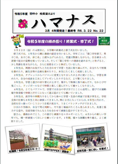 校長室だより 祝卒業 巣立ちの春号 編集後記抜粋