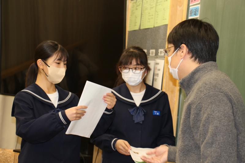 離任式では、生徒会長の村田 幸さんがお礼の言葉を述べ、花束を渡しました。釜井さん、これまでお世話になり本当にありがとうございました。
