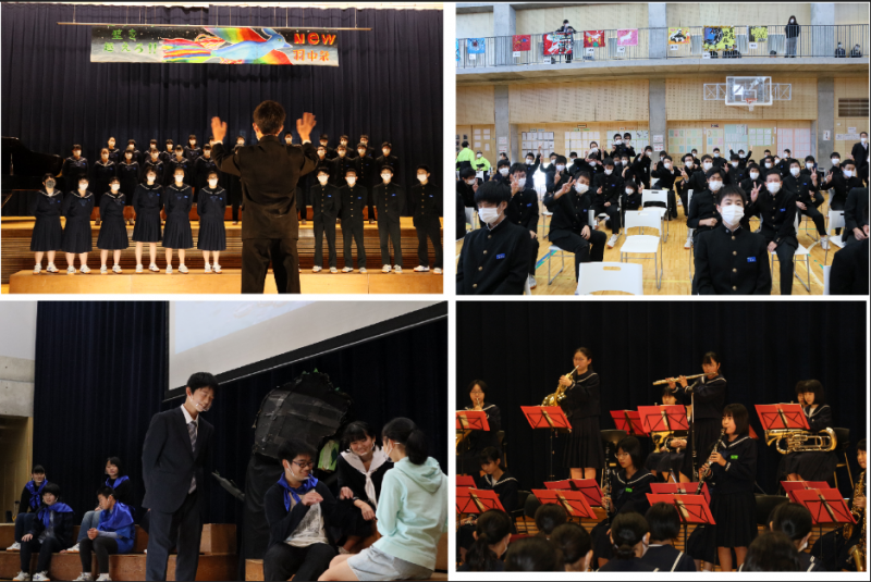 10/29(木) 羽中祭1日目(文化祭)が行われました。合唱、劇、吹奏楽部の演奏、団旗、照明や音声などの裏方運営、生徒会執行部の準備など、生徒の努力の日々が実った日になりました。合唱では、どのクラスも今までで最高の歌声を体育館に響かせていました。劇では、本番直前まで必死に練習を重ねたこともあり、みな堂々とした演技を見せ、会場を沸かせてくれました。生徒はみな、とてもいい表情で文化祭を楽しんでいました。
