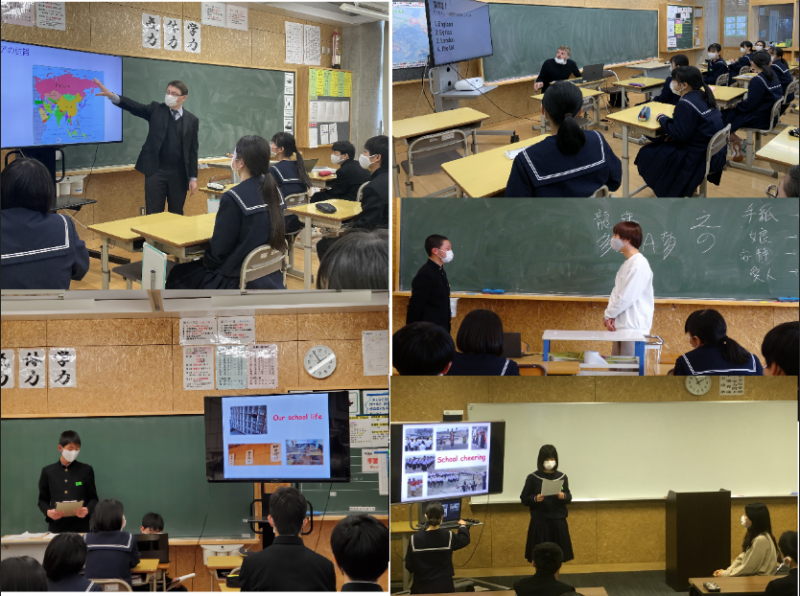 2/1,3(月、水)1年生を対象に、GLOBAL GATEWAYが本校にて開かれました。これは、国際交流を通し、生徒の国際意識の向上などを目指すために今年から初めて開催された取組です。ゲストティーチャーとして、近隣の学校で勤務されているALTの先生方をお招きしました。英語を用いたアクティビティーやプレゼンテーションを通して国際交流を図ることができ、生徒は充実した時間を過ごすことができました。