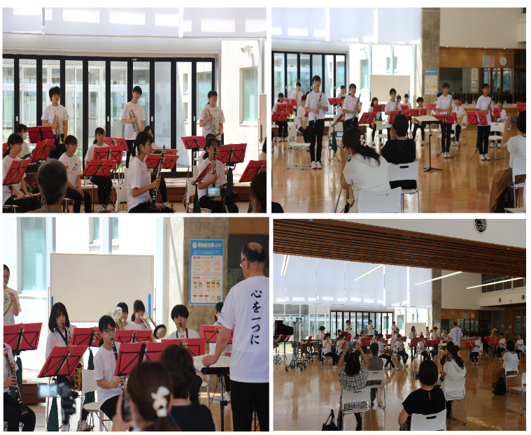 8/7(土) 本校ランチルームにて卒部演奏会が開かれました。当初はコスモアイル羽咋での開催を予定していましたが、新型コロナウイルス感染予防のため、会場が変更となりました。残念ではありましたが、部員のみんなはめげることなく、一生懸命練習に取り組んでいる様子が毎日見られました。本番での演奏は素晴らしく、3年生にとってはまさに集大成といえるものでした。