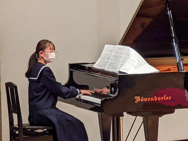 坂下凛太郎さんの指揮、青山依風希さんのピアノ伴奏による100名以上の合唱は、豊かな声量とともに美しい3部合唱の歌声をホール全体に響き渡らせることになりました。小学校ときに、一度はこのステージを経験していることが普通でしたが、この2年生の生徒たちは、それが実現せず今日に至っていました。