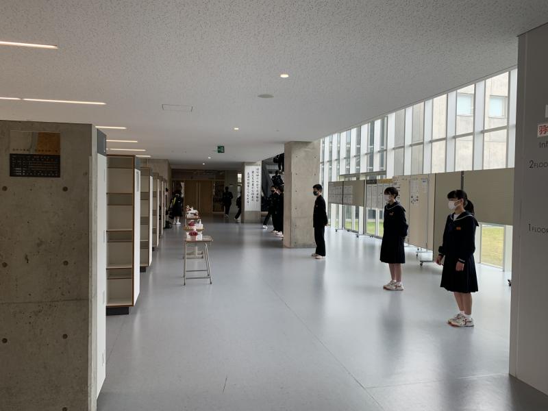 生徒会役員や生活委員会の生徒たちが連携して、玄関での挨拶運動を続けています。