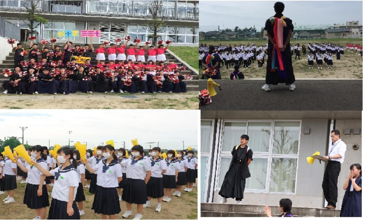 7月20日(月)に応援お披露目会を行いました。今年は唐戸山相撲大会が中止されました。しかし、羽咋中の伝統を絶やさないために、その代替として応援お披露目会を実施することとなりました。応援リーダーの生徒は毎日昼食後に一生懸命に応援練習に取り組んできました。応援リーダーでない生徒も本番では精一杯声を出し、応援は例年以上の盛り上がりを見せました。応援リーダーの生徒は皆、練習の日々を通してとてもたくましく成長したように見えます。また、応援お披露目会では羽咋中の生徒が1つになっているように心から感じました。新型コロナウイルスの影響により例年とは異なる日常を送っている生徒ですが、ようやく羽咋中の歯車が少しずつ回り始めてきたことを感じさせられた1時間でした。みんな、ほんとうにお疲れさまでした!!