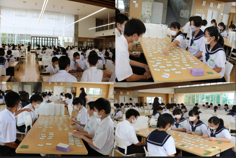 9/24(木)2年生で百人一首大会が行われました。グループごとにわかれ、取った枚数を競い合いました。子どもたちは全神経を集中させ、白熱した戦いを繰り広げていました。笑顔も多く見られ、子どもたちにとって充実したひと時となりました。