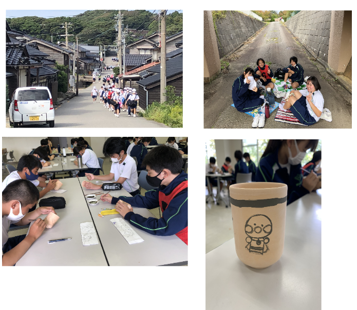 2年生は遠足で能登青少年交流の家に行きました。スタンプラリーをしながら現地まで歩きました。現地では湯呑の絵付けをしました。めったにできない貴重な経験ということもあり、生徒は楽しみながらも真剣に絵付けに取り組んでいました。往復14キロという長い距離ではありましたが、無事歩き切ることができ、生徒の様子からは疲労感とともに充実感が伝わってきました。