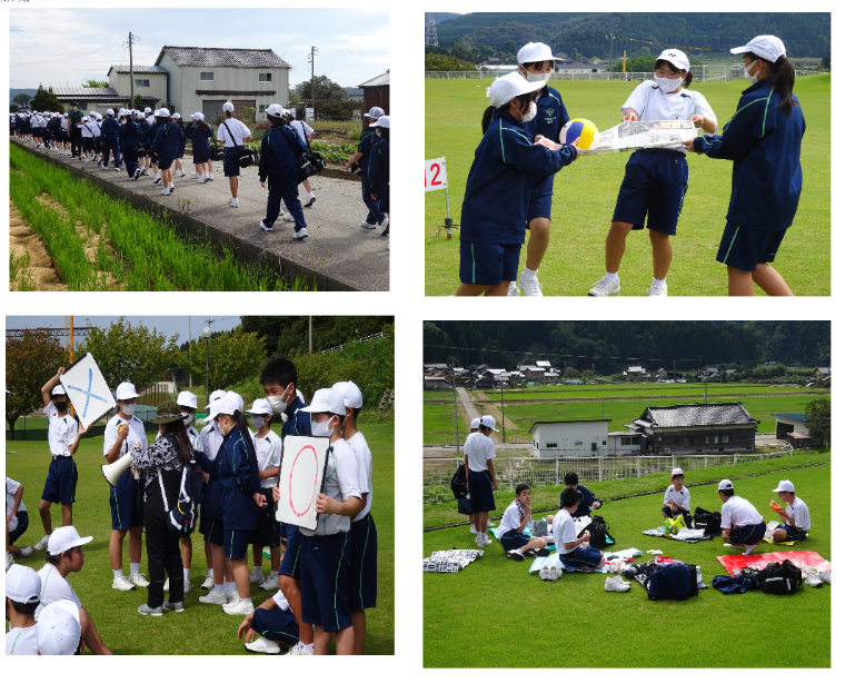 1年生は遠足で志雄運動公園に行きました。入学してはじめての校外行事ということもあり、生徒はみなとても楽しんでいる様子でした。現地では、生徒が企画した〇×クイズやリレーを行い、クラスの団結を深めることができました。往復12キロを無事全員で歩き切ることができました。