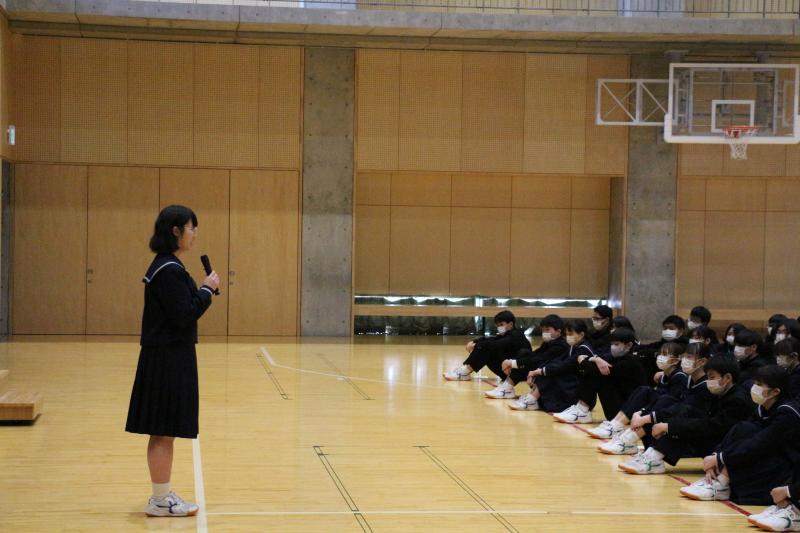 生徒一人一人が、このリーダーの人たちと同じ考えをもって協力し、羽咋中をより良くする責任があることを自覚し、充実した学校生活、生徒会活動になることを期待しています。力を合わせて頑張っていってください。