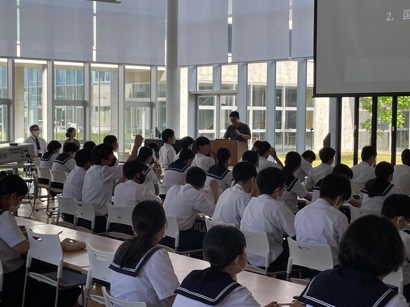 講師にカルペ・ディエム所属の現役東大生 布施川天馬(ふせかわ てんま)さんをお迎えして、「効率よく思考する」力をテーマにお話をしていただきました。今回は、受験生である3年生を対象に、1時間熱く語っていただきました。英語では、単語と文法、数学では計算力、国語は読解力や要約力が実力アップのカギであるとのこと。基本的なことを徹底的に覚えることや今後意識して取り組んでいく勉強方法が紹介され、論理的なお話は説得力をもって生徒たちに受け入れられたものと思います。