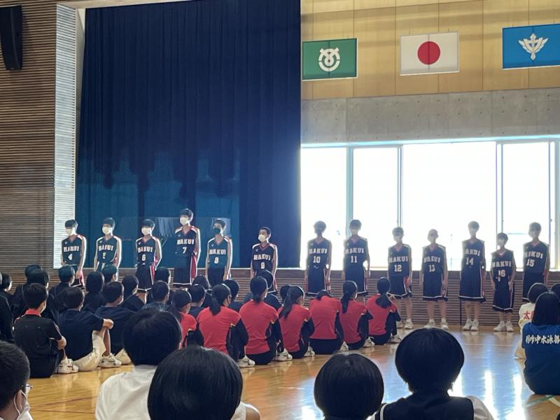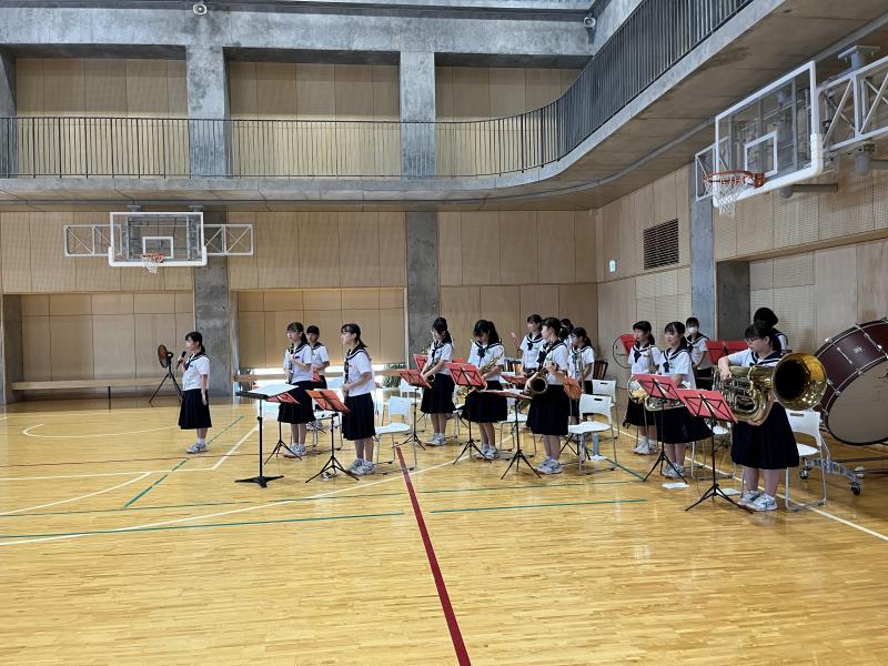 6日(木)、バスケットボール競技から始まる8日(土)からの県体の激励会を行いました。また、運動部に続き、23日(日)の県吹奏楽コンクールに出場する吹奏楽部は、自由曲「銀河鉄道」を全校生徒の前で披露しました。