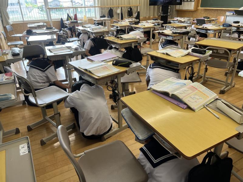 生徒たちは、校内放送を聞き、静かに机の下に入るなど真剣に取り組むことができました。