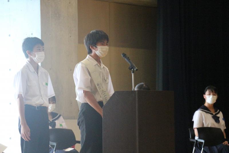 羽咋中の生徒として、立候補者の理想を聞いただけの傍観者とならず、自分事としてとらえて応援し、協力してほしいと思います。