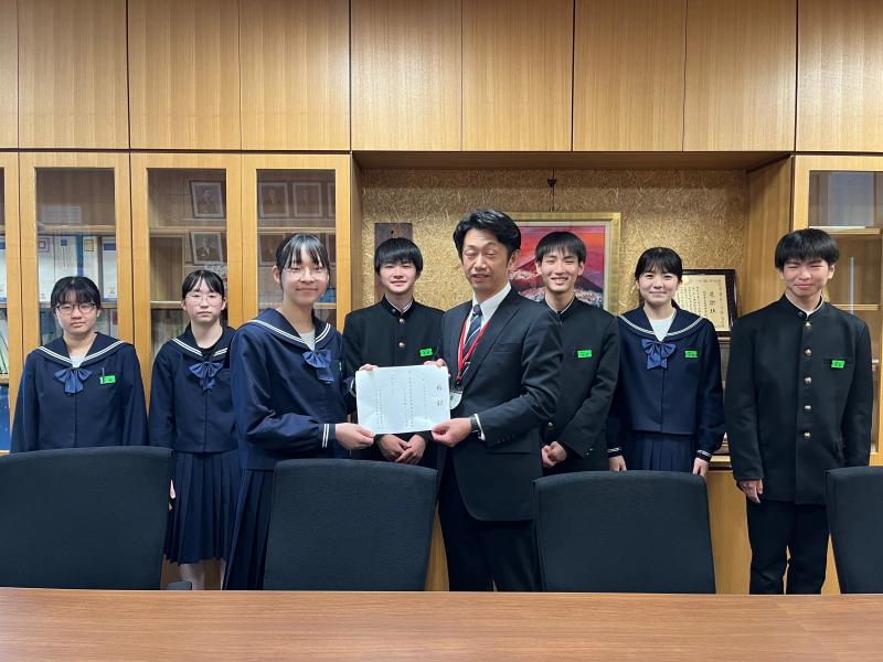 以前より羽咋市と愛知県刈谷市の間には、交流があったという経緯から刈谷市立依佐美中学校(よさみちゅうがっこう)の生徒会が中心となり、発災後、義援金を集め、本校に届けていただいておりました。本校においても、その主旨に賛同し、令和5年度後期生徒会役員が中心となって義援金を集め、この度、穴水町と輪島市の生徒を受け入れたということから、この市町にお見舞金をお渡しすることとしました。ご協力をいただいた方々には、改めてお礼申し上げます。