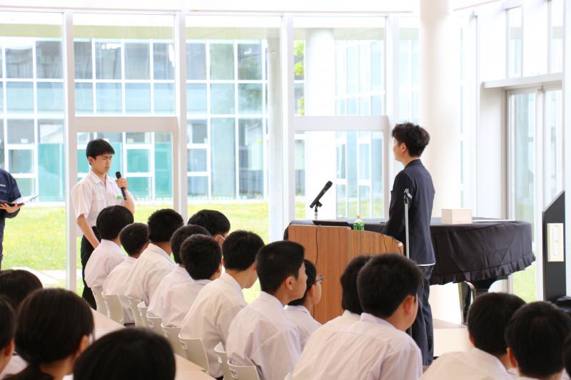 漆器文化を次世代に継承することを目標しながら新しい取組を展開されている田谷さんからは、最後に、何事にも「クレイジーなくらいの情熱」もってという言葉を生徒に送っていただきました。生徒たちは、田谷さんの熱い思い受け止めるとともに、キャリア教育、ふるさと教育の視点から自らを振り返る貴重な機会となっていました。