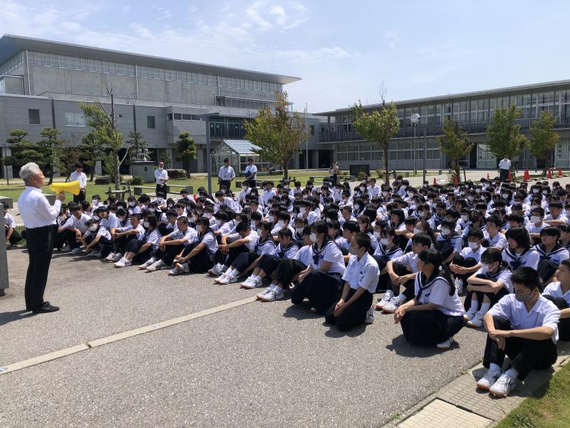 本日の避難訓練は、火災でしたが、それ以外にも地震や津波、不審者なども想定されます。また、時間も授業中だけでなく休み時間も起こる可能性がありますが、どんな状況であっても、自らの安全を確保し、自分で自分の命を守るということを頭において行動できるよう、今後も真剣に訓練に参加して欲しいと伝えました。