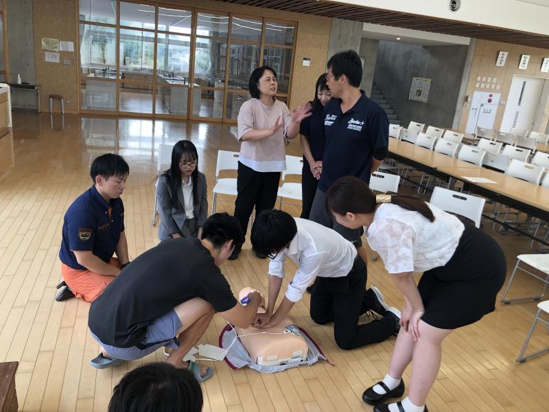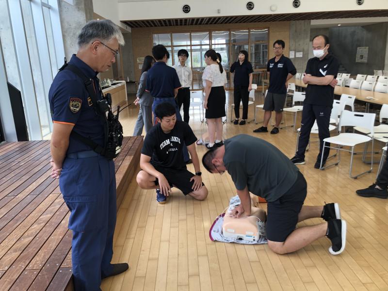 夏休みも終わりに近づいた28日(水)、羽咋消防署から3人の方々を講師にお迎えし、救命講習を行いました。