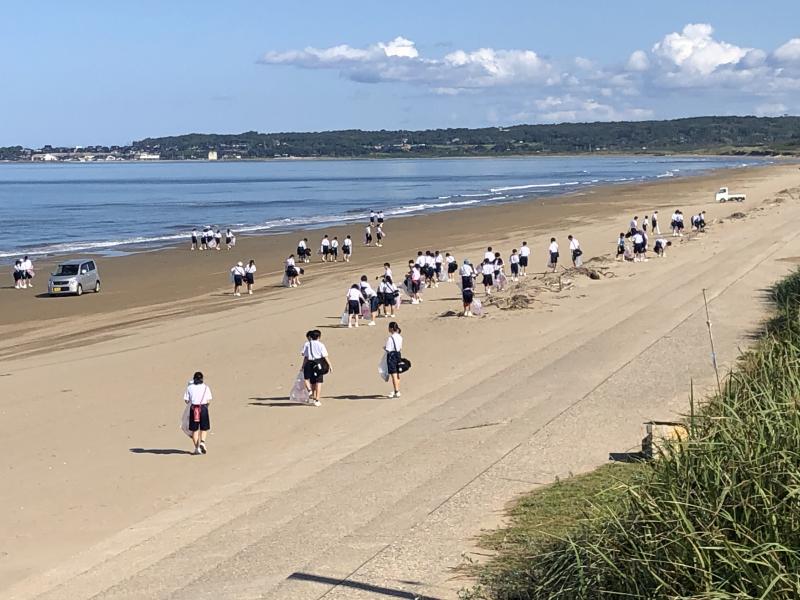 晴天に恵まれた秋空の下、各学年で分担をして清掃活動に取り組みました。多量のプラスチックごみやペットボトル、不燃物の空きびんや空き缶を分別しながら回収することができました。残暑の一日となりましたが、生徒たちは、爽やかな汗を流しながら、仲間との楽しい時間を共有していました。