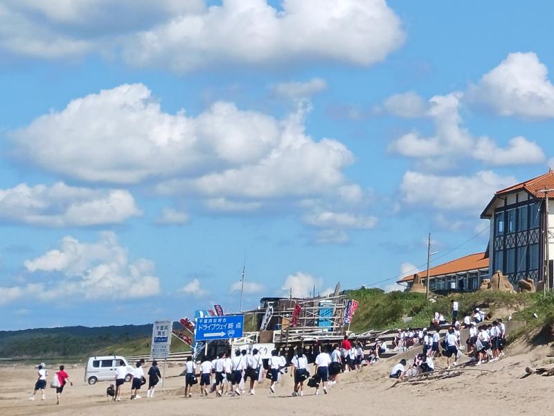 25日(水)、羽中プロジェクトの一環として、全校で千里浜クリーン活動に取り組みました。