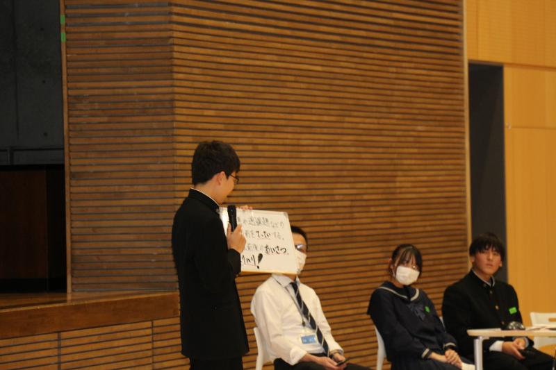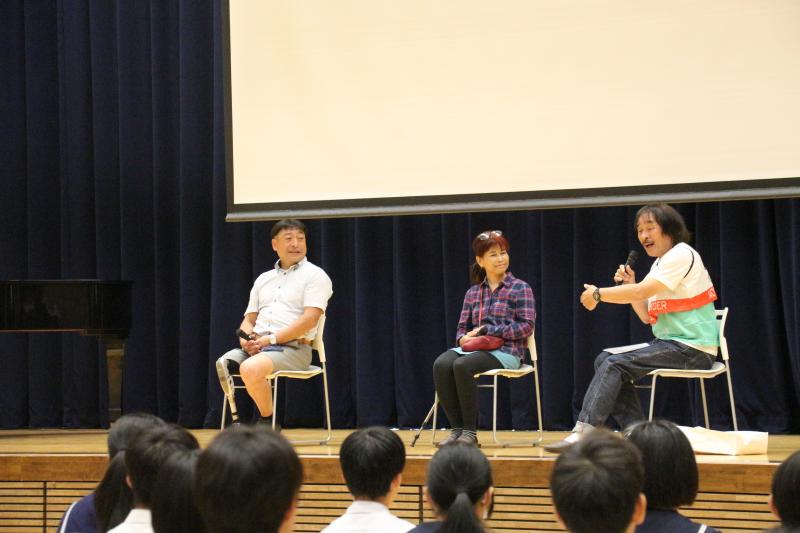 これまでの困難を不屈の精神で乗り越えてこられた方々のお話は、生徒たちに、多くの勇気や希望を与えてくださいました。講演終了後に、生徒会長の井上晃希さんが「自分の目標や理想に向かっていくときに、あきらめずに努力することの大切さを学びました。自分の目標に向かって、これからも努力していきたい。」と感謝の気持ちを伝えました。