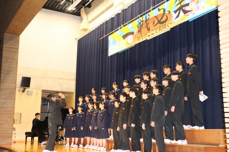 1日目の文化祭では、合唱コンクール、総合的な学習の時間の発表、ステージ発表等がありました。中でも合唱コンクールは、これまで仲間と練習をし、本番は一番の歌声で歌ったことは、何物にも代えられない貴重な時間でした。勝敗を超えて、仲間とどのような時間を共有したかに価値があるのだと思います。